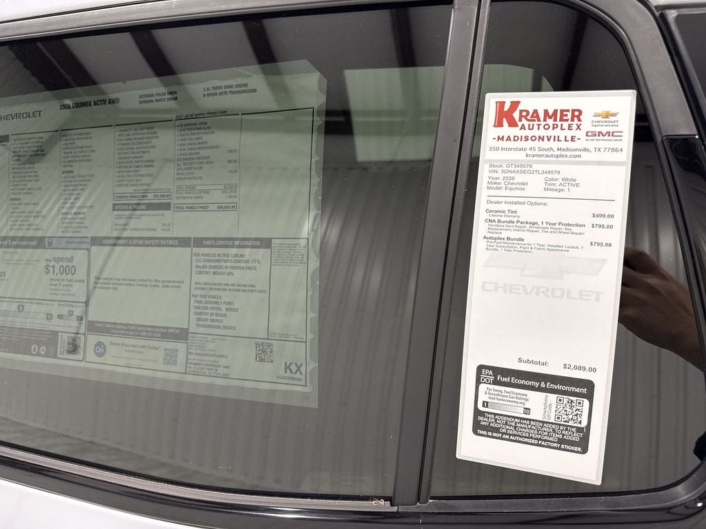 Discover the 2026 Chevrolet Equinox AWD ACTIV — a stylish, efficient compact SUV ready for Texas roads. Located in Madisonville, TX, this Chevrolet Equinox pairs a responsive 4-cylinder 1.5L gasoline engine with all-wheel drive for confident handling in varied conditions. Whether commuting or heading out for weekend adventures, the ACTIV trim delivers a refined ride with rugged accents and versatile cargo space. This Chevrolet Equinox comes loaded with modern driver-assist and convenience features: Adaptive Cruise Control eases highway driving, Lane Keep Assist helps you stay centered in traffic, and Remote Start ensures the cabin is comfortable before you get in. Enjoy hands-free connectivity with Bluetooth® for safe calls and media streaming, plus a Heated Steering Wheel for added comfort on cooler mornings. We're offering the best price in the area on this 2026 Chevrolet Equinox AWD ACTIV — a competitively priced option for smart buyers in Madisonville and surrounding communities. With strong fuel economy, advanced safety tech, and a comfortable interior, this Chevrolet Equinox is an excellent value for families and individuals alike. Contact us today to schedule a test drive in Madisonville, TX, and experience the performance and features of the 2026 Chevrolet Equinox AWD ACTIV. Don't miss the best-priced AWD option available now.