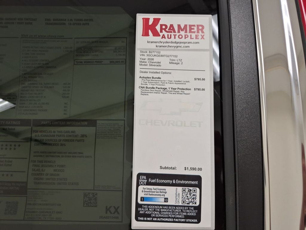 2026 Chevrolet Silverado 1500 LTZ 4WD — 6‑cyl 3.0L Diesel — Livingston, TX Ready for work, play, and everything in between, this 2026 Chevrolet Silverado 1500 LTZ 4WD with the efficient 6‑cylinder 3.0L diesel delivers power, torque, and exceptional fuel economy. Located in Livingston, TX, this Chevrolet Silverado LTZ is priced to move — offering the best price on a premium, rugged pickup that combines capability with refined comfort. Premium features include Steering Wheel Audio Controls for safe, convenient media handling and Hands Free Bluetooth® for seamless phone connectivity on the go. Safety and convenience are highlighted by the integrated Back-Up Camera and Lane Departure Warning, helping keep you aware and in control on long hauls or tight job-site maneuvers. Android Auto compatibility ensures your favorite apps, navigation, and music are ready at your fingertips. Built to tow, haul, and handle Texas roads, the Chevrolet Silverado LTZ's diesel powertrain provides strong low-end torque for towing heavy loads, while 4WD ensures traction in varied conditions. The interior balances durability with upscale touches, making every drive comfortable whether commuting or cruising across country. This 2026 Chevrolet Silverado 1500 LTZ in Livingston, TX, offers a rare mix of diesel efficiency, 4WD capability, advanced tech, and top safety features — all at the best price available. Contact us today to schedule a test drive and experience why this Chevrolet Silverado stands out in its class.