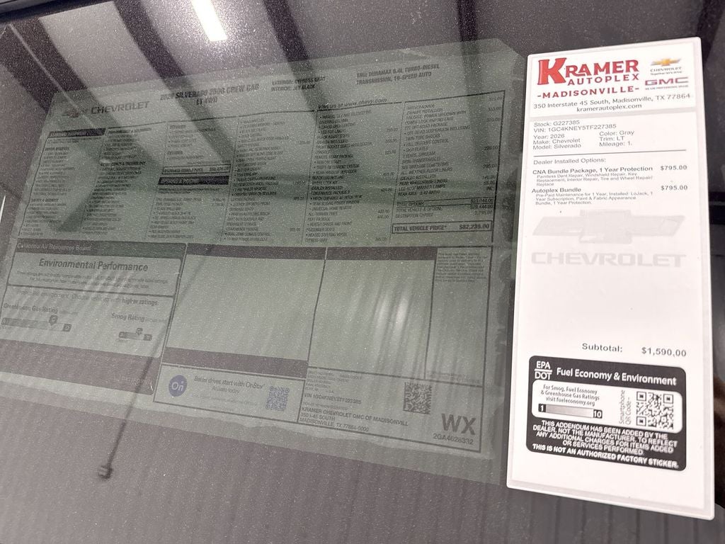 2026 Chevrolet Silverado 2500 LT — 4WD, V8 6.6L Diesel — Madisonville, TX Command the road with this rugged 2026 Chevrolet Silverado 2500 LT, now available in Madisonville, TX. Built for heavy-duty performance, the 6.6L V8 diesel delivers class-leading torque and towing capability while the robust 4WD system provides confidence whether you're on a job site or exploring Texas backroads. This Chevrolet Silverado blends power with modern convenience and safety features that make every drive smarter and more comfortable. Key highlights include Lane Departure Warning to help keep you centered, and a Back-Up Camera that simplifies maneuvering in tight spots. Stay connected on the go with Android Auto and Apple CarPlay integration, plus Hands Free Bluetooth® for safer phone and media control. The LT trim offers a practical, well-appointed interior designed for long days and tough workloads. This 2500 LT is competitively priced — the best price in the area — giving you exceptional value for a diesel workhorse with premium tech and driver-assist features. Located in Madisonville, TX, this Chevrolet Silverado is ready for immediate test drives and inspection. If you need serious capability without compromise, this 2026 Chevrolet Silverado 2500 LT delivers power, safety, and connectivity in one tough package. Contact us to schedule a viewing and secure the best price on this heavy-duty Chevrolet.