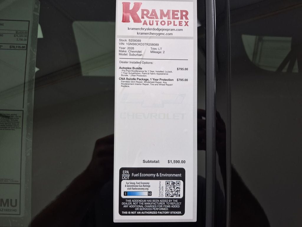 The leather seats in this 1/2 ton suv are a must for buyers looking for comfort, durability, and style. You'll never again be lost in a crowded city or a country region with the navigation system on this 1/2 ton suv. The Chevrolet Suburban offers Apple CarPlay for seamless connectivity. Lane Keep Assist in this Chevrolet Suburban helps maintain safe driving by gently steering to stay within the lane. It comes equipped with Android Auto for seamless smartphone integration on the road. This model features a hands-free Bluetooth® phone system. Never get into a cold vehicle again with the remote start feature on this 1/2 ton suv. This 2026 Chevrolet Suburban has auto-adjust speed for safe following. It's Lane Departure Warning keeps you safe by alerting you when you drift from your lane. See what's behind you with the back up camera on this model. Maintaining a stable interior temperature in the Chevrolet Suburban is easy with the climate control system.