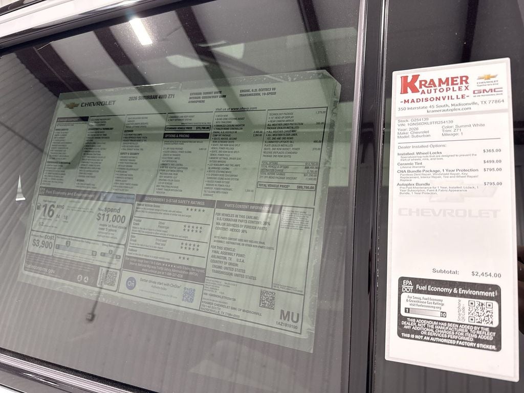 2026 Chevrolet Suburban Z71 4WD — powerful capability, refined comfort, and advanced tech combine in this commanding full-size SUV, now available in Madisonville, TX. Powered by a robust 6.2L V8 gasoline engine paired with four-wheel drive, this Chevrolet Suburban Z71 delivers confident towing, responsive acceleration, and composed handling across varied terrain and weather conditions. Z71-specific suspension and off-road-tuned features ensure rugged capability without sacrificing on-road refinement. Inside, generous seating and premium materials create a comfortable environment for long drives and family outings. Stay connected and entertained with Apple CarPlay and Android Auto integration, while the built-in Navigation system guides you confidently to your destination. Safety-focused technology includes Lane Departure Warning and Lane Keep Assist to help maintain proper lane position and reduce driver fatigue. Cargo versatility and thoughtful storage solutions make hauling gear effortless, and available towing features expand the Chevrolet Suburban's utility for trailers, boats, and recreational equipment. This 2026 Chevrolet Suburban Z71 offers a compelling combination of performance, technology, and practicality. Located in Madisonville, TX, this Chevrolet Suburban is competitively priced and represents the best value available — the best price in the area. Contact us for current availability, financing options, and to schedule a test drive. Experience the capability and comfort of the 2026 Chevrolet Suburban Z71 firsthand.