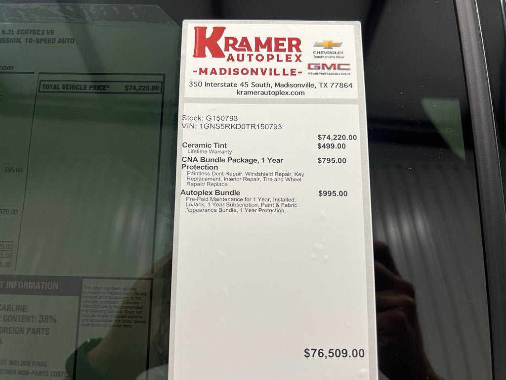 2026 Chevrolet Tahoe RST — RWD V8 5.3L, Madisonville TX. If you're searching for a bold, powerful full-size SUV with premium tech and confidence-inspiring performance, this Chevrolet Tahoe RST delivers. Powered by a V8 5.3L gasoline engine paired with rear-wheel drive, it offers smooth highway cruising, commanding acceleration, and a tow-friendly platform for weekend adventures. Located in Madisonville TX and priced to sell, this Chevrolet Tahoe RST represents the best price on the market for its class. Inside, modern comforts and driver-focused features make every drive enjoyable. Stay connected with Android Auto and Hands-Free Bluetooth®, enabling seamless smartphone integration and safe calling on the go. The built-in Navigation system takes the guesswork out of long trips, while Adaptive Cruise Control adds highway convenience and reduces driver fatigue. A Heated Steering Wheel keeps you comfortable during cool mornings and enhances overall driving pleasure. The Chevrolet Tahoe RST combines athletic styling with practical utility: roomy seating, generous cargo space, and a suite of advanced features designed for daily life and road trips. Whether you need a reliable family hauler, a powerful tow vehicle, or a tech-forward SUV with standout presence, this 2026 Chevrolet Tahoe RST checks every box. Don't miss this opportunity in Madisonville TX—competitive pricing means you're getting top value for a premium V8 Chevrolet Tahoe. Contact us today to schedule a test drive and secure the best price available.