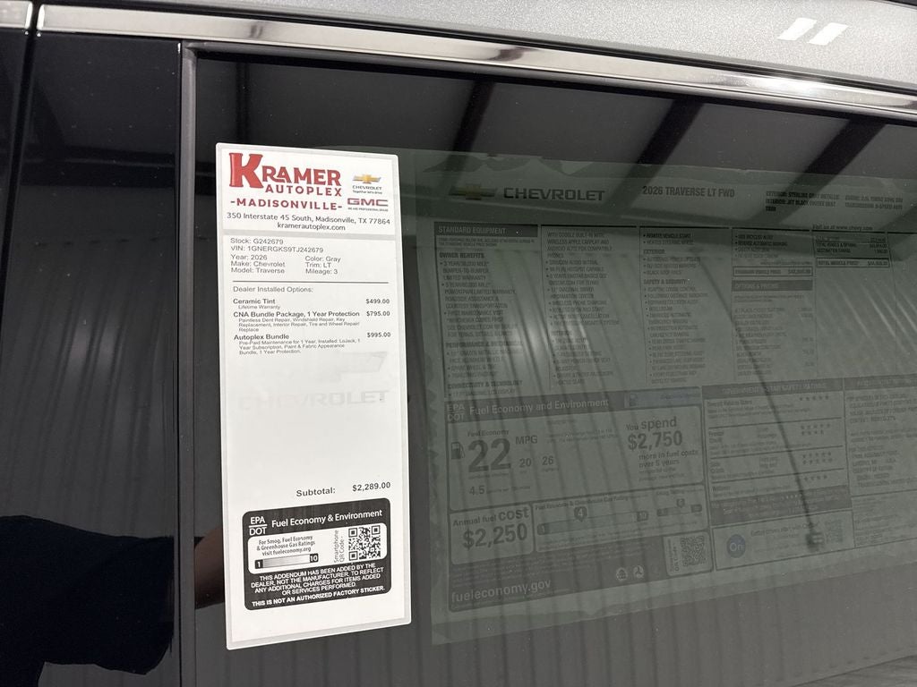 2026 Chevrolet Traverse FWD LT — located in Madisonville, TX — offers spacious comfort, modern technology, and a fuel-efficient 4-cylinder 2.5L gasoline engine at the best price in the area. This Chevrolet Traverse delivers confident daily driving with front-wheel drive and a host of safety and convenience features that make every trip easier. Key features include Adaptive Cruise Control for relaxed highway driving, Hands-Free Bluetooth® for seamless calls and audio streaming, a Back-Up Camera to enhance parking and reversing visibility, Android Auto for smartphone integration, and built-in Navigation to keep you on course. The LT trim balances practicality and refinement with roomy seating, generous cargo capacity, and driver-focused controls. Whether commuting, running errands, or heading out on a weekend adventure, the Chevrolet Traverse's efficient 2.5L 4-cylinder engine provides reliable performance and economical operation. Interior comforts and advanced tech are designed to keep passengers connected and comfortable on longer journeys. This 2026 Chevrolet Traverse FWD LT is priced to move — offering the best price for comparable vehicles nearby. Located in Madisonville, TX, it's ready for test drives today. Contact us to schedule your appointment, test drive, or to get current financing and availability details. Don't miss this competitively priced Chevrolet Traverse.