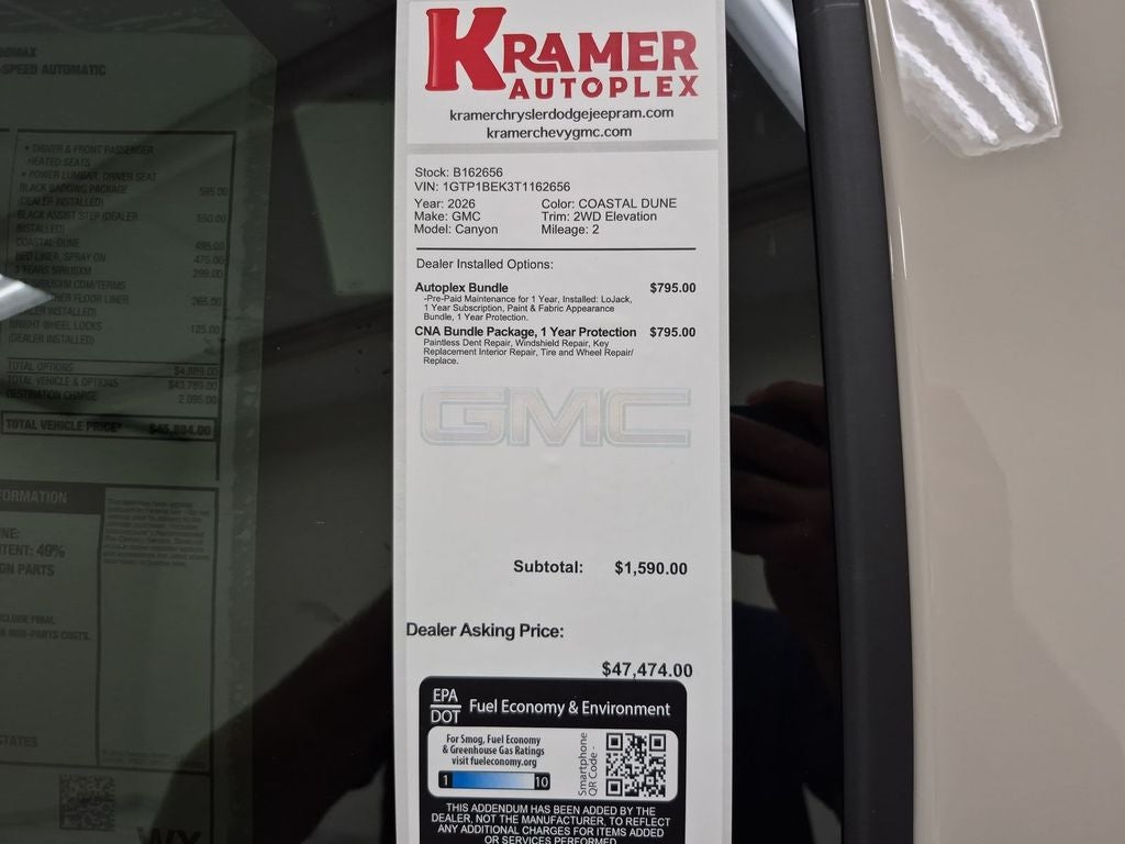 Apple CarPlay: Seamless smartphone integration for this small pickup - stay connected and entertained on the go! See what's behind you with the back up camera on this small pickup. This 2026 GMC Canyon 's Lane Departure Warning helps keep you in your lane. The installed navigation system will keep you on the right path. The rear parking assist technology on this model will put you at ease when reversing. The system alerts you as you get closer to an obstruction. Lane Keep Assist in this 2026 GMC Canyon helps maintain safe driving by gently steering to stay within the lane. This small pickup features a hands-free Bluetooth® phone system. The GMC Canyon offers Android Auto for seamless smartphone integration. Enjoy the incredible handling with the rear wheel drive on it. This model has a 4 Cyl, 2.7L high output engine. Greater towing safety becomes standard with the installed trailer brake.