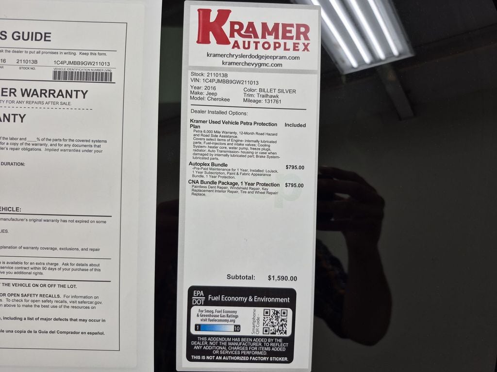 For sale in Livingston, TX: 2016 Jeep Cherokee Trailhawk 4WD — the best price in the area on a capable, comfort-packed SUV. Powered by a fuel-efficient 4-cylinder 2.4L gasoline engine and equipped with four-wheel drive, this Trailhawk is ready for weekend trails or daily commuting with confident handling and rugged capability. Inside, enjoy leather seats and a heated steering wheel for comfortable cold-weather driving. Remote start brings warmth or cool-down on demand before you step inside. Stay connected with hands-free Bluetooth® for phone calls and media streaming, plus XM Radio for a wide variety of music and talk channels on long drives. Trailhawk-specific tuning delivers enhanced off-road performance, while the practical interior offers space for passengers and cargo. Safety and convenience features help make every drive easier, and the maintenance history shows attentive care. Whether you're tackling rough roads or navigating city streets, this Jeep Cherokee balances capability, comfort, and efficiency. Located in Livingston, TX, this 2016 Jeep Cherokee Trailhawk is competitively priced and ready for a test drive — the best price you'll find for a vehicle with this equipment and condition. Contact us today to schedule a viewing and drive home a capable trail-ready SUV.