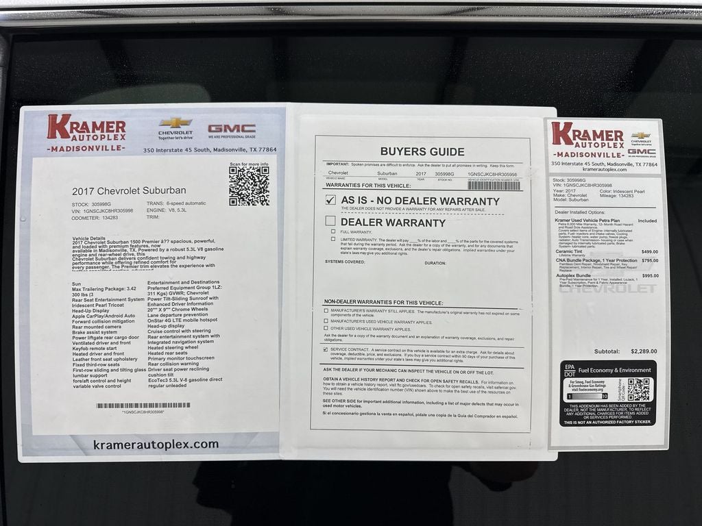 This Chevrolet Suburban combines classic Chevrolet durability with upscale amenities, making it an intelligent choice for buyers seeking capability without sacrificing comfort. Safety features and a solid maintenance history contribute to long-term reliability. Located in Madisonville, TX, this 2017 Chevrolet Suburban 1500 Premier is competitively priced and offers the best price in the market for its condition and equipment. Schedule a viewing or test drive today to experience the blend of power, comfort, and value this Chevrolet Suburban delivers. Financing options are available to qualified buyers.