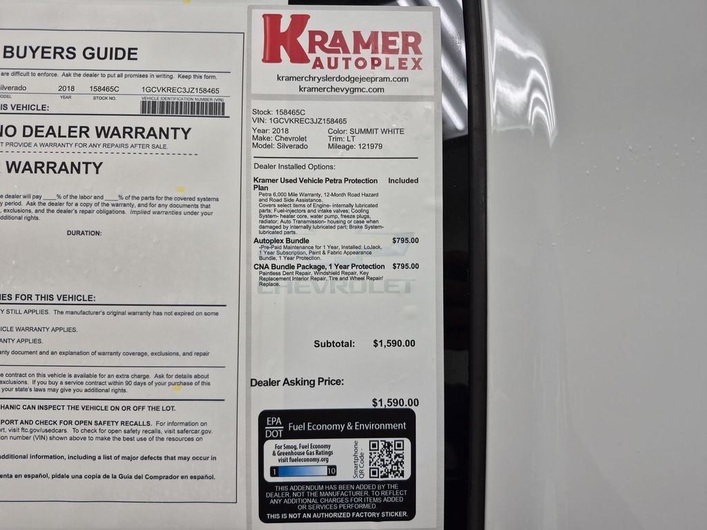 Our dealership has already run the CARFAX report and it is clean. A clean CARFAX is a great asset for resale value in the future. See what's behind you with the back up camera on this Chevrolet Silverado. The steering wheel audio controls on this unit keep the volume and station within easy reach. Bluetooth® technology is built into this vehicle, keeping your hands on the steering wheel and your focus on the road. This 2018 Chevrolet Silverado 1500 is outfitted with an OnStar communication system. When you encounter slick or muddy roads, you can engage the four wheel drive on the vehicle and drive with confidence. This unit has a V8, 5.3L high output engine. Quickly unlock this unit with keyless entry. It embodies class and sophistication with its refined white exterior. Maintaining a stable interior temperature in it is easy with the climate control system. This 2018 Chevrolet Silverado 1500 features cruise control for long trips.