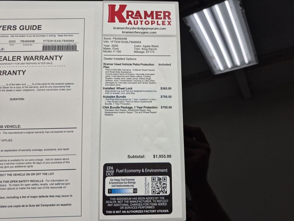 The installed navigation system will keep you on the right path. with XM/Sirus Satellite Radio you are no longer restricted by poor quality local radio stations while driving the vehicle. Anywhere on the planet, you will have hundreds of digital stations to choose from. It offers Android Auto for seamless smartphone integration. Never get into a cold vehicle again with the remote start feature on this Ford F-150. This model has auto-adjust speed for safe following. This 1/2 ton pickup offers Apple CarPlay for seamless connectivity. An off-road package is installed on this 2020 Ford F-150 so you are ready for your four-wheeling best. This vehicle's Cross-Traffic Alert: Safeguarding you from unexpected traffic when reversing. This unit's Lane Departure Warning helps keep you in your lane. Our dealership has already run the CARFAX report and it is clean. A clean CARFAX is a great asset for resale value in the future.