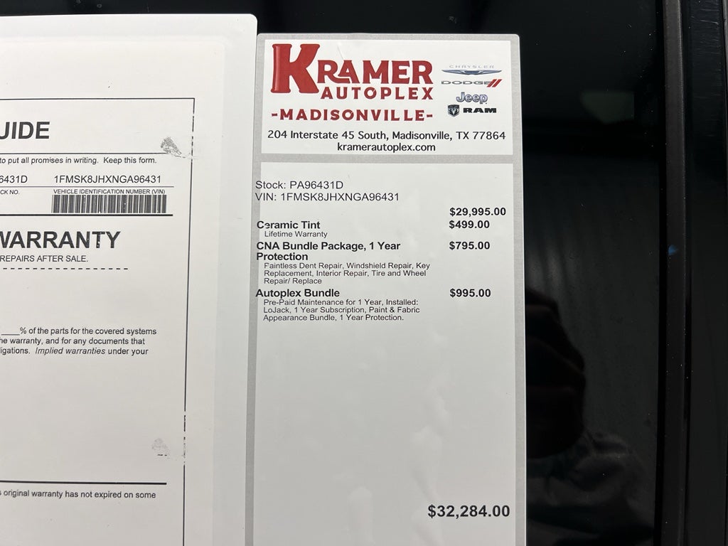 Equipment Group 800A: 18" High Gloss Black-Painted Aluminum; 3.58 Torsen Limited Slip Rear Axle; ActiveX Seat Material Captain's Chairs; 10-Speed Automatic Transmission; 2.3L EcoBoost I-4 Engine; P265/65R18 AT BSW Tires; 6. 160 lbs GVWR; AM/FM Stereo. Twin Panel Moonroof. **Equipment listed is based on original vehicle build and subject to change. Please confirm the accuracy of the included equipment by calling the dealer prior to purchase.**