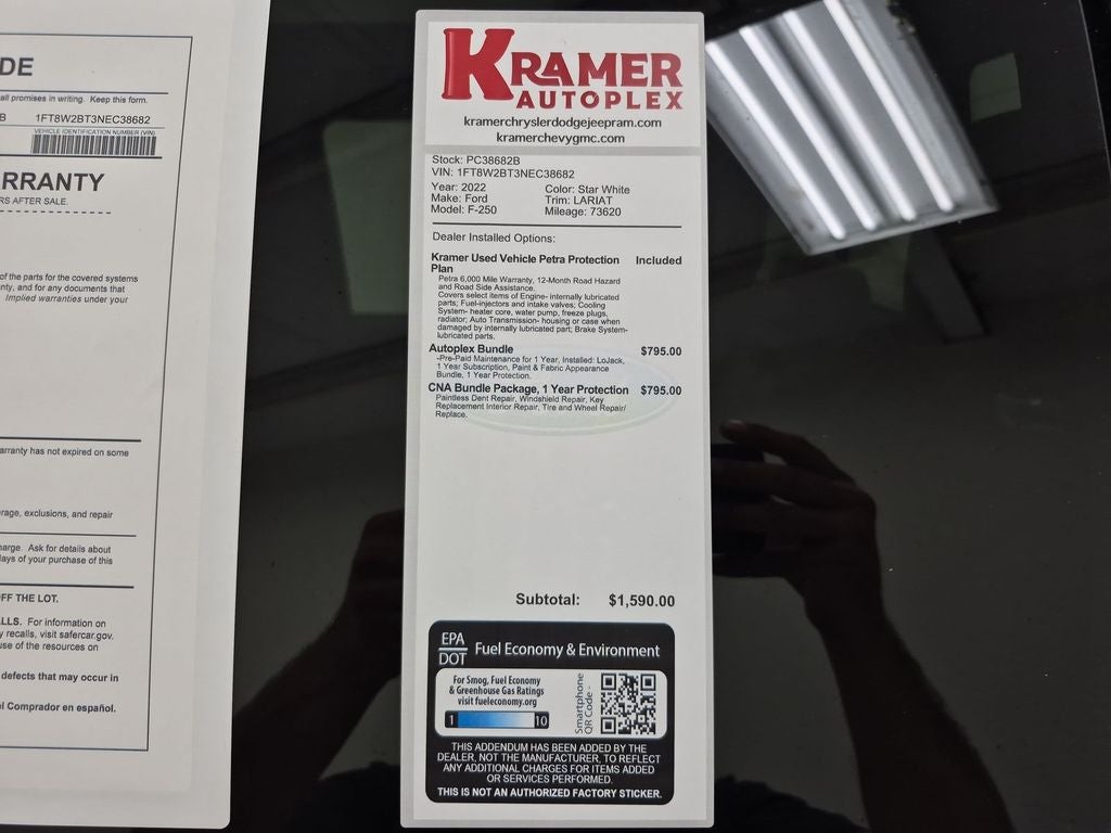 FX4 Off-Road Package: Transfer Case and Fuel Tank Skid Plates; Hill Descent Control; Off-Road Specifically Tuned Shock Absorbers; Unique FX4 Off-Road Box Decal. Lariat Ultimate Package: Power Heated/ventilated Driver Seat with Memory; PowerScope Trailer Tow Mirrors with Memory; Easy Entry/exit Memory Driver's Seat Feature; Tailgate Step and Handle; LED Box Lighting; Intelligent Access with Push-Button Start; Power Heated/ventilated Passenger Seat; Memory Power-Adjustable Pedals; Remote Start System; Ambient Lighting - Fixed Color; Power Telescoping/tilt Steering Wheel/column; Remote Tailgate Release; Wireless Charging Pad. Pro Trailer Backup Assist - High Capacity: Ultimate Trailer Tow Camera System; Lane Departure Warning. Order Code 608A: 18" Bright Machined Cast Aluminum Wheels; Front Leather Seating Surfaces 40/console/40; B&O Sound System by Bang and Olufsen. Twin Panel Power Moonroof. Quad Beam LED Headlamps and LED Taillamps. Adaptive Cruise Control and Collision Warning. Star White Metallic TC. Sta