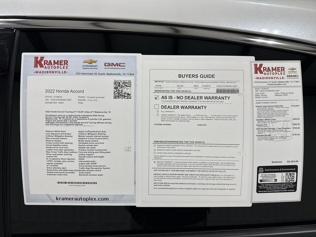 This 2022 Honda Accord Touring presents the best price in the area for its class — a rare combination of low mileage, top-tier features, and proven reliability. The exterior and interior are in excellent condition, reflecting careful ownership and attentive maintenance. Located in Madisonville, TX, this Honda Accord is ready for immediate viewing and test drives. Don't miss your chance to own a premium, feature-rich sedan at an unbeatable price. Contact us today to schedule a test drive or request additional information.