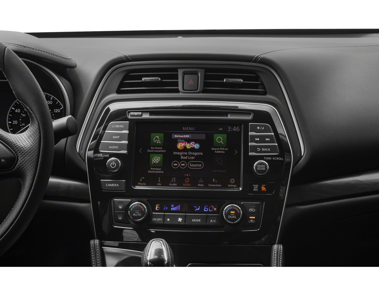 - Radio: AM/FM/CD Bose Audio System -inc: MP3/WMA/AUX reader, 11 speakers, NissanConnect featuring 8" color display w/multi-touch control, Apple CarPlay, Android Auto, 2 front illuminated USB connection ports (1 Type-A, 1 Type-C), rear USB ports (charge only, 1 Type-A, 1 Type-C), Bluetooth® hands-free phone system, hands-free text messaging assistant, streaming audio via Bluetooth®, voice recognition, Siri Eyes Free, SiriusXM radio, SiriusXM advanced audio features, NissanConnect services powered by SiriusXM, Wi-Fi hotspot, Nissan door to door navigation, SiriusXM Traffic, SiriusXM Travel Link, display commander and 7" Advanced Drive Assist Display (ADAD)