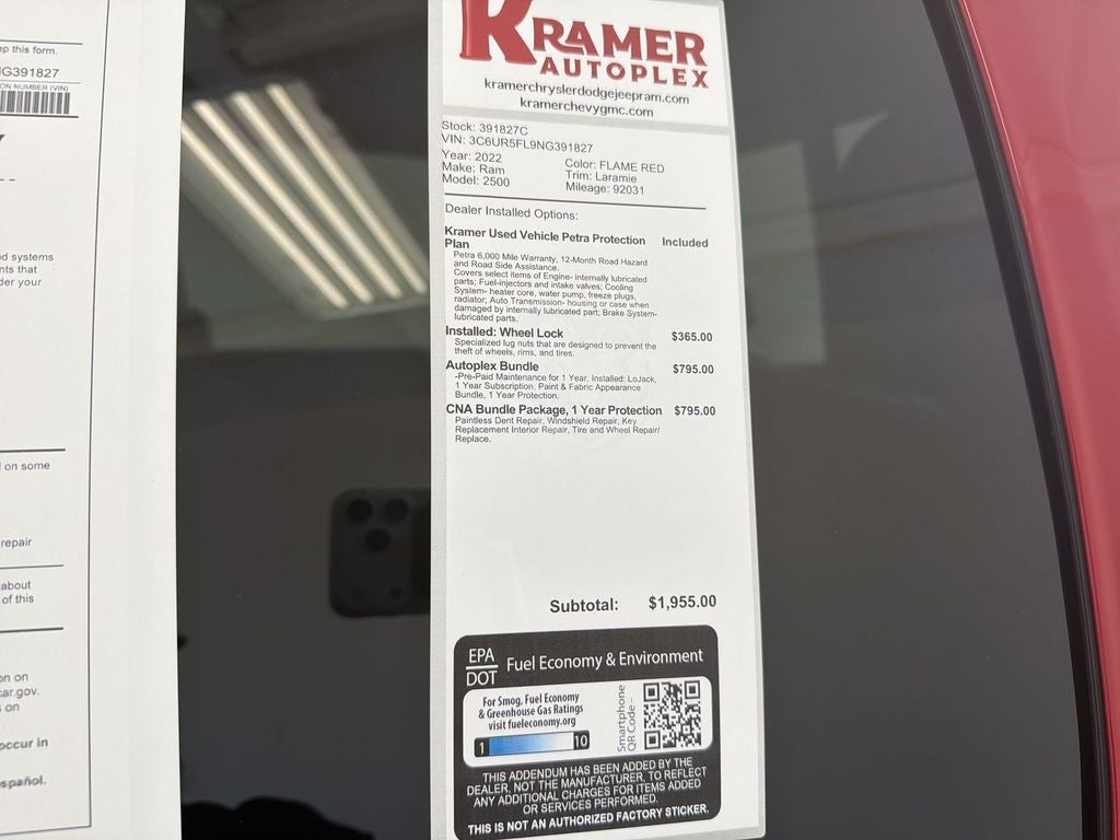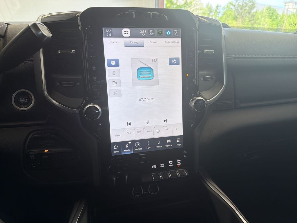 Quick Order Package 2HH Laramie. Laramie Level A Equipment Group: Mirror-Mounted Aux Reverse Lamps; Rain Sensitive Windshield Wipers; Power Adjustable Pedals with Memory; Exterior Mirrors with Supplemental Signals; Power Chrome Tow Mirrors with Convex Spotter and Memory; Exterior Mirrors Courtesy Lamps; Trailer Tow Mirrors; Remote Tailgate Release; Exterior Mirrors with Heating Element; Auto High Beam Headlamp Control; Chrome Exterior Mirrors; Exterior Mirrors with Memory; Mirror Running Lights; Power Folding Mirrors; Foam Bottle Insert (door Trim Panel); 2nd Row in Floor Storage Bins; Radio/driver Seat/mirrors/pedals Memory; Power Adjustable Convex Aux Mirrors. Night Edition: Mirror-Mounted Aux Reverse Lamps; Black Ram Head Tailgate Badge; 20" X 8.0" Black Painted Aluminum Wheels; Exterior Mirrors with Supplemental Signals; Black Headlamp Bezels; Body Color Door Handles; Exterior Mirrors Courtesy Lamps; Painted Front Bumper; Painted Rear Bumper; Trailer Tow Mirrors; Exterior Mirrors with Heating Element; LT285/60R20E OWL On/off Road Tires; Black Exterior Truck Badging; Exterior Mirrors with Memory; Gloss Black Grille Billets/accents; Mirror Running Lights; Body Color Grille Surround; Black Interior Accents; Power Folding Mirrors; Black Exterior Mirrors; Black Tail Lamp Bezels; Power Black Tow Mirrors with Convex Spotter and Memory; Power Adjustable Convex Aux Mirrors. Towing Technology Group B: Center Stop Lamp with Cargo View Camera; Mirror-Mounted Aux Reverse Lamps; Surround View Camera System; Exterior Mirrors with Supplemental Signals; Power Chrome Tow Mirrors with Convex Spotter and Memory; Exterior Mirrors Courtesy Lamps; Trailer Tow Mirrors; Exterior Mirrors with Heating Element; Chrome Exterior Mirrors; Exterior Mirrors with Memory; Mirror Running Lights; Power Folding Mirrors; Trailer Reverse Guidance; Power Adjustable Convex Aux Mirrors. Uconnect 5 Navigation with 12.0" Display Radio. Leather Trimmed Bucket Seats. Anti-Spin Differential Rear Axle. Center Stop Lamp with Cargo View Camera. LED Bed Lighting. Tow Hooks. Clearance Lamps. **Equipment listed is based on original vehicle build and subject to change. Please confirm the accuracy of the included equipment by calling the dealer prior to purchase.**