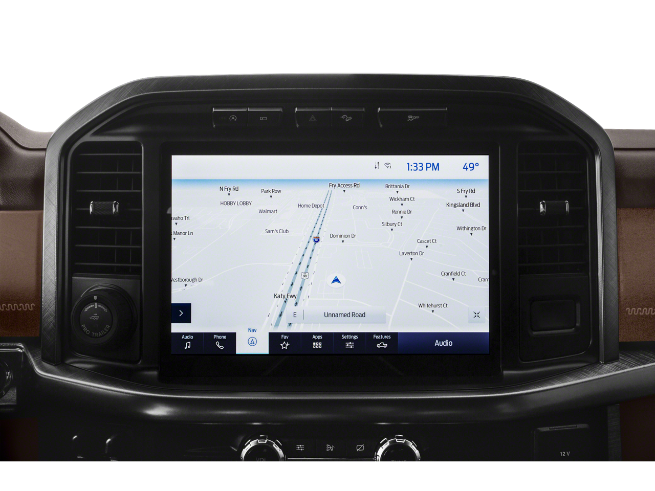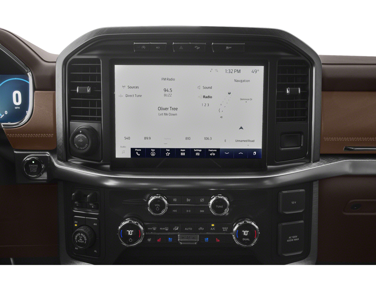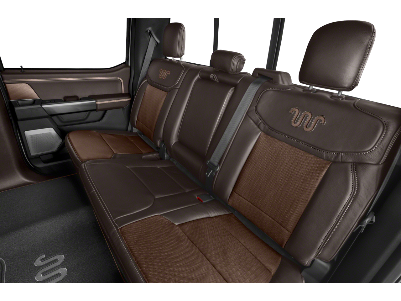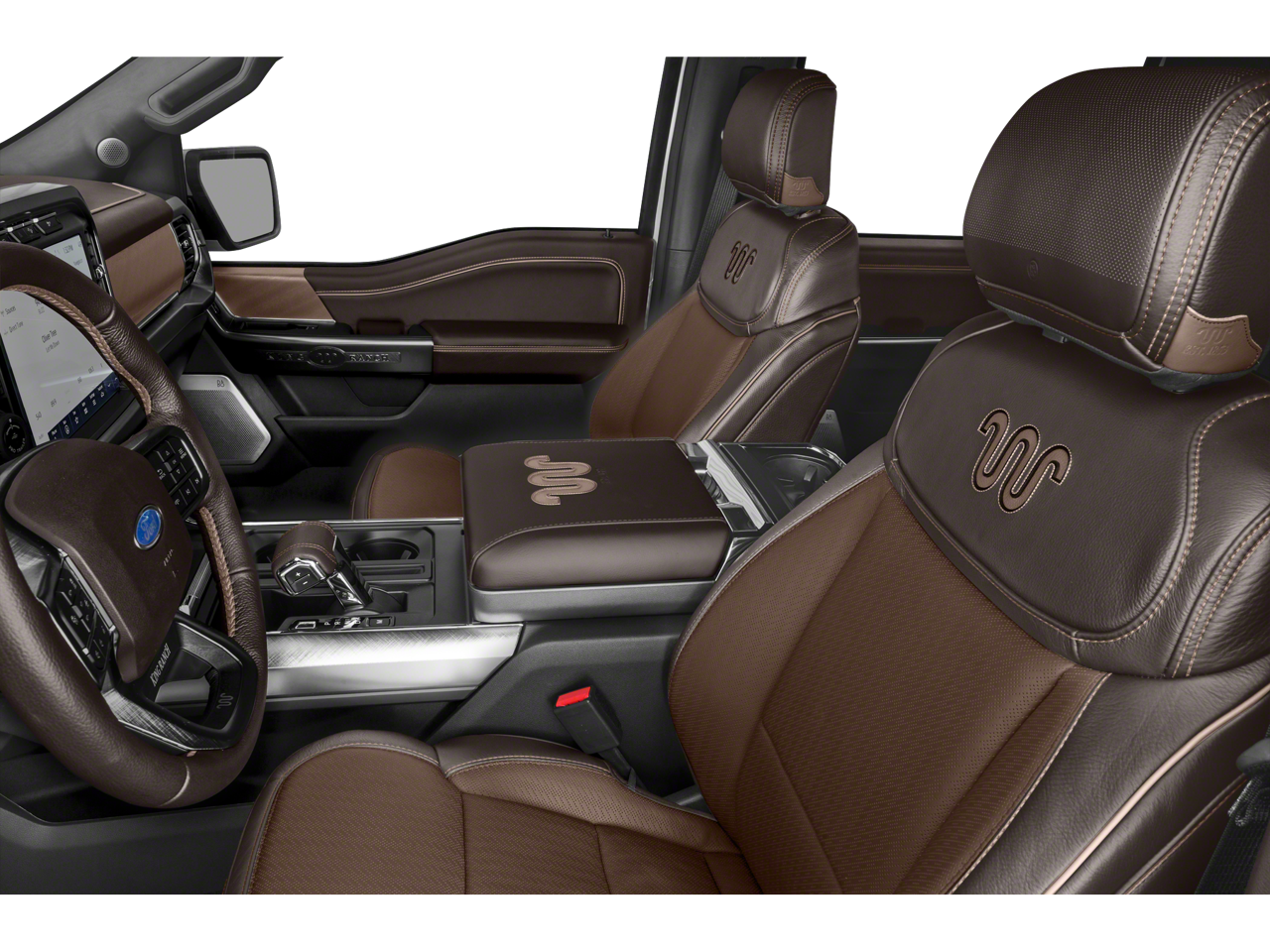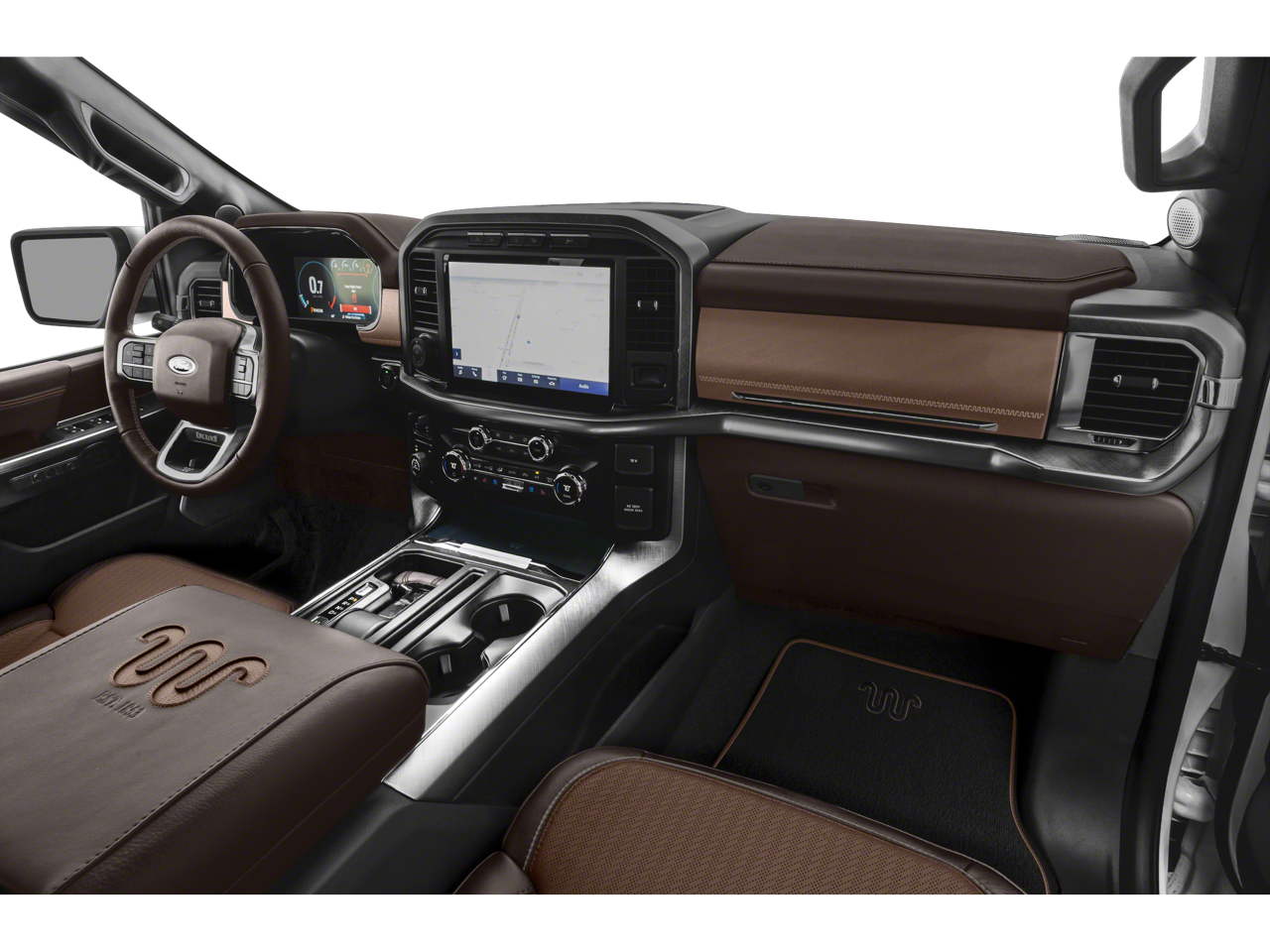 King Ranch Chrome Appearance Package: Chrome Door Handles with Body-Color Strap; Front and Rear Chrome Bumpers; Bright Belt Moldings; Chrome Skull Caps on Exterior Mirrors. FX4 Off-Road Package: Off-Road Tuned Front Shock Absorbers; Skid Plates; Monotube Rear Shocks; Rock Crawl Mode; 4x4 FX4 Off-Road Bodyside Decal; Hill Descent Control; Electronic Locking with 3.31 Axle Ratio; Tray Style Floor Liner. Equipment Group 601A High: 275/60R20 BSW AT Tires; B&O Unleashed Sound System by Bang & Olufsen Radio; Electronic 10-Speed Automatic Transmission; 20" Machined-Aluminum Wheels; Power-Deployable Running Boards; 7. 050 lbs Payload Package GVWR; King Ranch Leather Bucket Seats; Multi-Contour Driver and Passenger Seats. Ford BlueCruise 1.0: Active Park Assist 2.0. Trailer Tow Package: Integrated Trailer Brake Controller; Class IV Trailer Hitch Receiver; Pro Trailer Backup Assist and Pro Trailer Hitch Assist. King Ranch Monochromatic Paint Package: Painted Body-Color Wheellip Molding. Bed Utility Package: BoxLink; LED Box Lighting; Tailgate Step with Tailgate Work Surface; Power Tailgate. Twin Panel