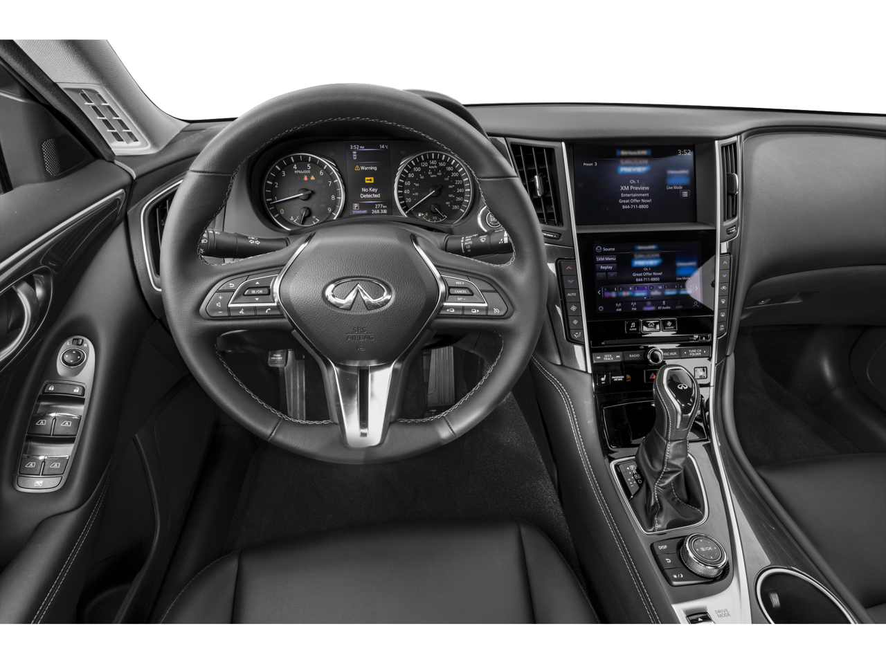 See what's behind you with the back up camera on this vehicle. This vehicle is pure luxury with a heated steering wheel. This mid-size car's Forward Collision Warning feature alerts drivers to potential front-end collisions. This 2023 INFINITI Q50 's Lane Departure Warning keeps you safe by alerting you when you drift from your lane. The leather seats in this 2023 INFINITI Q50 are a must for buyers looking for comfort, durability, and style. This model offers Automatic Climate Control for personalized comfort. Engulf yourself with the crystal clear sound of a BOSE sound system in this mid-size car. The rear parking assist technology on this 2023 INFINITI Q50 will put you at ease when reversing. The system alerts you as you get closer to an obstruction. Never get into a cold vehicle again with the remote start feature on this mid-size car. This vehicle offers Android Auto for seamless smartphone integration.