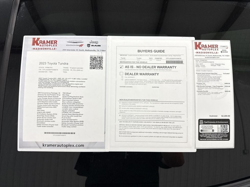 Located in Madisonville, TX, this Toyota Tundra SR5 is a standout value if you're seeking a dependable, low-mileage 4WD pickup with modern tech and safety features. Don't miss this opportunity — a well-priced, low-mileage 2023 Toyota Tundra SR5 like this won't last long. Schedule a test drive today.