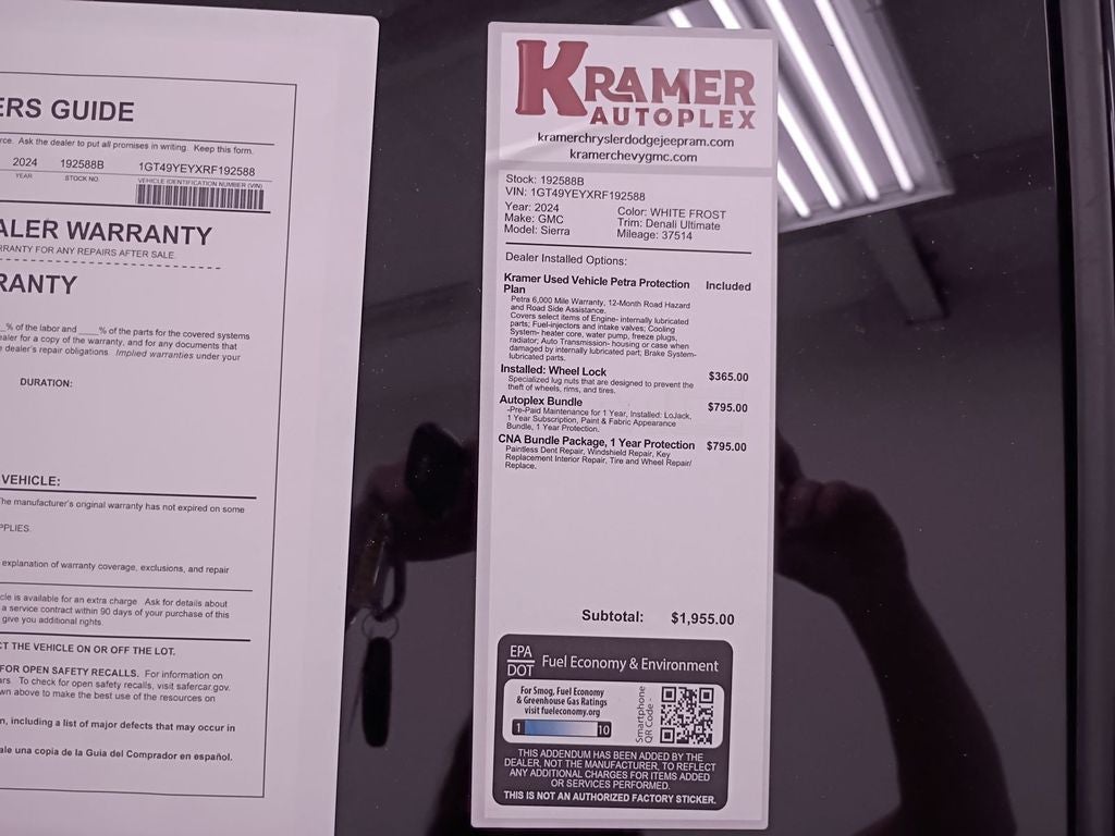 Technology Package: Multicolor 15" Diagonal Head-Up Display; Auto-Dimming Inside Rearview Mirror with Camera. Preferred Equipment Group 5SB: LED Cargo Area Lighting; Trailer Side Blind Zone Alert; SiriusXM with 360L; Remote Vehicle Starter System; Power Sliding Rear Window with Defogger; Safety Alert Seat; Ultrasonic Front and Rear Park Assist; Trailer Camera Provisions; Electric Rear-Window Defogger; Floor-Mounted Center Console; Signature Denali Grille in Vader Chrome; Unauthorized Entry Theft-Deterrent System; Bed View Camera with Two Trailer Camera Provisions; Front Rain-Sensing Wipers; Trailer Tire Pressure Monitor Sensors; Sierra HD Pro Safety; Wireless Phone Projection; 2 USB Ports; Rear Cross Traffic Alert; 120-Volt Instrument Panel Power Outlet; 2 Charge/data USB Ports Inside Center Console; LED Smoked Amber Roof Marker Lamps; Heated Driver and Front Outboard Passenger Seats; Wireless Charging; X31 Off-Road Package; Steering Wheel Audio Controls; 2 Charge-Only Rear USB Ports; Universal Home Remote; 120-Volt Bed Mounted Power Outlet; Heated 2nd Row Outboard Seats; Power Front Windows with Passenger Express Up/down; 2-Speed Active Transfer Case; Deep-Tinted Glass; Spray-On Pickup Bedliner with Denali Logo; Integrated Trailer Brake Controller; HD Surround Vision; Ventilated Driver and Front Passenger Seats; Manual Tilt-Wheel/telescoping Steering Column; Power Sunroof; Keyless Open and Start; ProGrade Trailering System; Bose Premium Series 12-Speaker System; Push Button Start; Rear Wheelhouse Liners. White Frost Tricoat. Gooseneck/5th Wheel Prep Package. Premium Front Floor Liners with Removable Carpet Insert. **Equipment listed is based on original vehicle build and subject to change. Please confirm the accuracy of the included equipment by calling the dealer prior to purchase.**