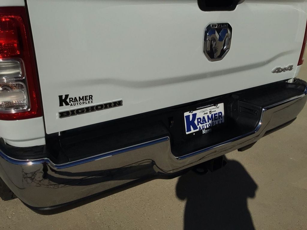 Quick Order Package 2HZ Big Horn. Level 1 Equipment Group: Leather Wrapped Steering Wheel; Rear Dome with On/off Switch Lamp; Front Fog Lamps; Premium Cloth 40/20/40 Bench Seat; Glove Box Lamp; Auto Power-Folding Mirrors; Footwell Courtesy Lamp; Exterior Mirrors with Heating Element; Mirror Running Lights; Uconnect 5 with 8.4" Display Radio; Foam Bottle Insert (door Trim Panel); Black Exterior Mirrors; 18" X 8.0" Polished Aluminum Wheels; Big Horn Instrument Panel Badge; Power-Adjustable Convex Aux Mirrors; Forward and Reverse Utility Lights; Locking Lower Glove Box; Power Heated Fold Telescopic Mirrors; Exterior Mirrors with Supplemental Signals; Steering Wheel Mounted Audio Controls; Exterior Mirrors Courtesy Lamps; Dual Glove Boxes; Center Hub; Power Adjust Mirrors; 2nd Row in Floor Storage Bins; Power Telescoping Mirrors. Quick Order Package 2GZ Big Horn. Premium Cloth 40/20/40 Bench Seat. Uconnect 5 with 8.4" Display Radio. Chrome Flat Cab-Length Side Steps. MOPAR Spray in Bedliner. 5th Wheel/gooseneck Towing Prep Group. Front Fog Lamps. Power 2-Way Driver Lumbar Adjust. **Equipment listed is based on original vehicle build and subject to change. Please confirm the accuracy of the included equipment by calling the dealer prior to purchase.**